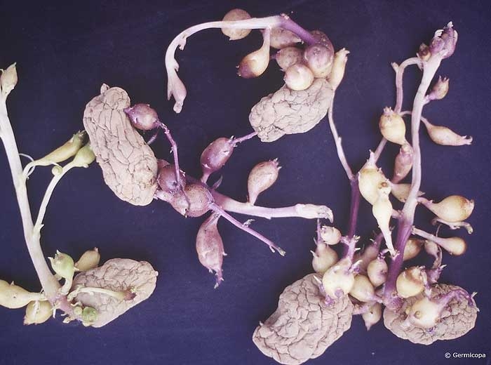 The length of dormancy can vary according to the cultivar and conditions in the year of production. It may range from 17 to 40 weeks starting from tuber formation until the appearance of the first visible sprout (around 1 mm in length) on tubers stored in darkness immediately after the harvest, at 15°C with a relative humidity above 85%.