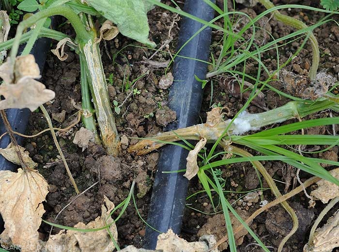 - Signs : fluffy white and airy mycelial felt covering more or less the lesions in humid conditions. Sporangia, oospores, chlamydospores can be observed using a light microscope in degraded tissues.