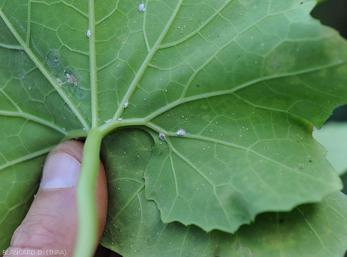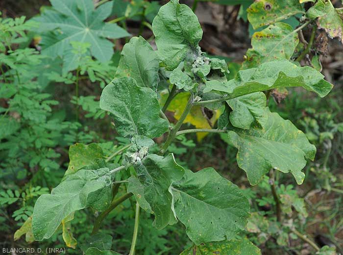 - Presence of honeydew and subsequently Fumagine covering the surface of the affected aerial organs (figures).