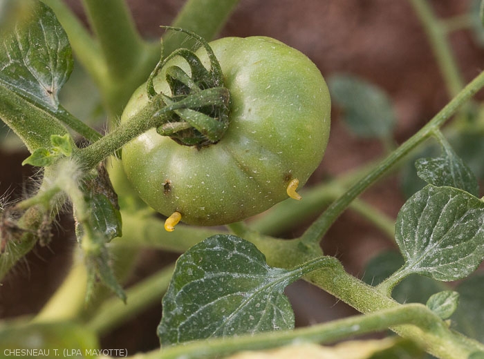 On young tomato fruits, the first attacks appear very early, about ten days after flowering, when their diameter reaches 2 cm. The attack rate then increases rapidly and reaches its maximum about 3 weeks after flowering. Subsequently, older fruits may still be punctured, albeit more weakly.