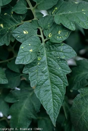 The expression of symptoms seems to be strongly influenced by climatic conditions, in particular by temperature and light in the shelters. Thus, symptoms are easily observed from fall through spring, and tend to disappear in warm, bright periods. The disease expresses itself differently depending on the stage of development of the plant and the cultivar. Note that it can go completely unnoticed, despite the infection of many plants, or appear on a layer of leaves and fruits.