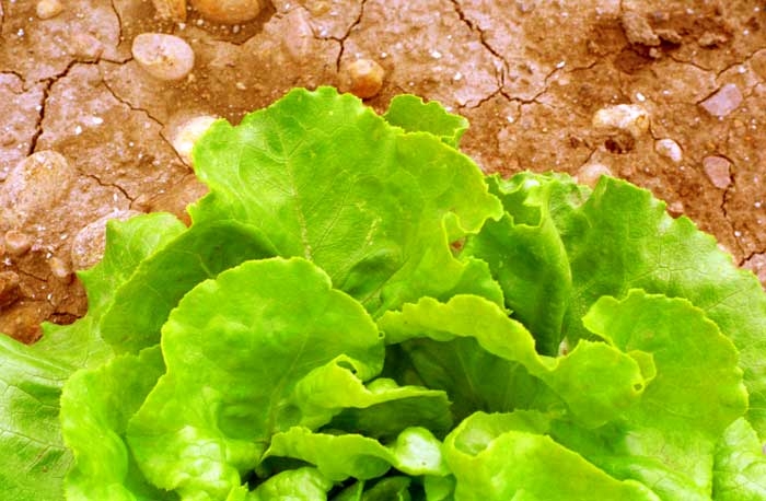 Les symptômes provoqués par le virus du flétrissement de la fève (Broad bean wilt virus, BBWV) sont relativement discrets et ils peuvent même s'atténuer avec le temps (figure 1). Sur laitue beurre, on observe au champ une décoloration sur les feuilles externes et une marbrure sur les plus jeunes (figure 2). En condition de transmission artificielle sur de jeunes plantes (batavia ou beurre), la croissance est parfois fortement ralentie et des taches chlorotiques peuvent apparaître accompagnées d'une marbrure généralisée.