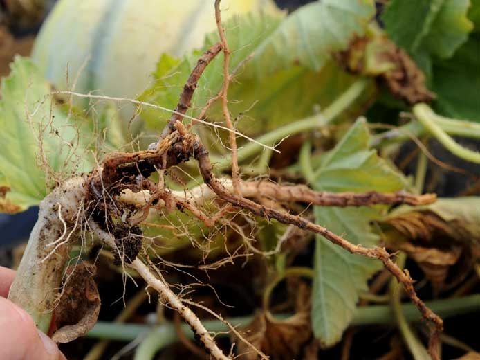 Roots have disappeared and those that remain show more or less extensive reddish-brown necrotic lesions (Figures 5 and 6).