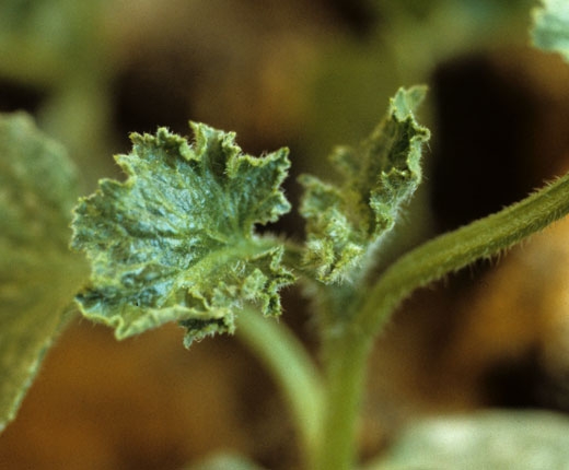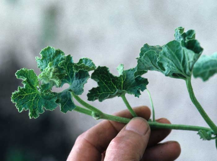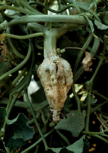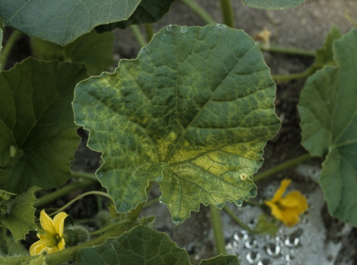 The varietal sensitivity differences may occur in the melon. Thus, if you grow several varieties at the same time, you may be able to observe a sectoral distribution of diseased plants and healthy plants corresponding to different varieties.