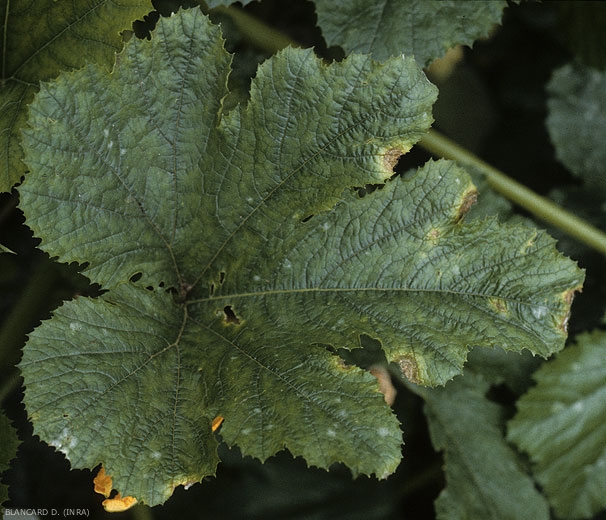 On the leaves , it is responsible for spots that frequently start at the edge of the blade. These are rather circular, at least at the beginning of the evolution, humid, and gradually necrosis. They can present concentric zonations and be haloed with a chlorotic halo (figures 1 and 2). These spots can also be initiated from contaminated floral parts that have fallen on the leaf blade.