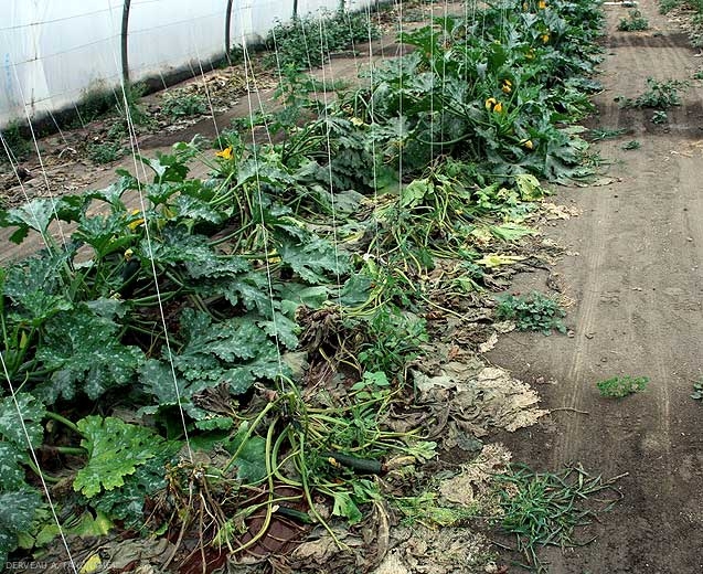 Fusarium solani f. sp. cucurbitae parasita plántulas, plantas y frutos en todas las etapas de su desarrollo.