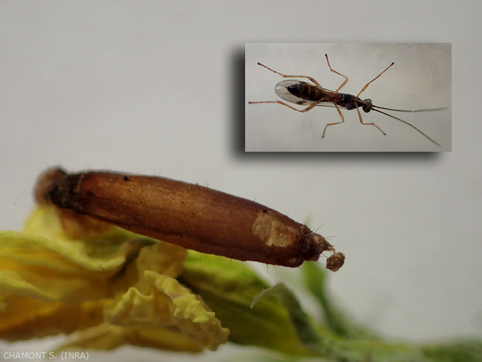 - en los idiobiontes , el desarrollo comienza poco después de la puesta, tan pronto como emerge el huevo. La aparición del hospedador tiene lugar en la etapa en la que tuvo lugar el desove. Este tipo de desarrollo se encuentra muy a menudo en ectoparasitoides, cuyo huésped se encuentra dentro del tejido vegetal. Luego, las hembras depositan sus huevos en huéspedes que han completado su desarrollo larvario o en estado de ninfa. En este caso también se incluyen los parásitos oófagos, pero generalmente son endoparasitoides;