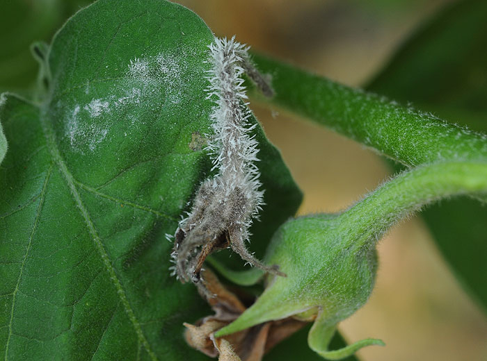Muy ocasionalmente nocivo para las berenjenas bajo abrigo, principalmente al final del cultivo, y en plantas más o menos senescentes.