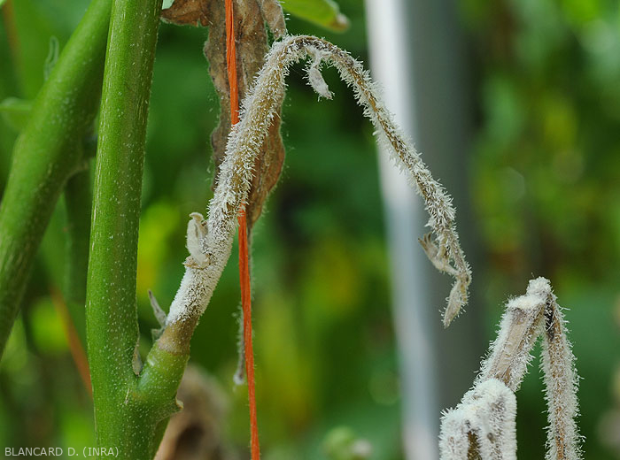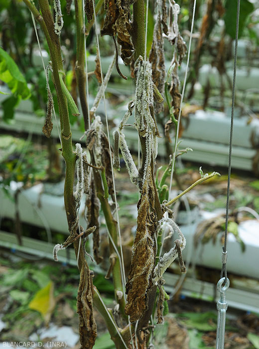 Condiciones favorables para su desarrollo : particularmente aficionado a los ambientes húmedos en invernaderos y refugios, y temperaturas medias en torno a los 20 ° C. Las plantas etioladas y / o senescentes son particularmente vulnerables. En condiciones favorables, la duración de un ciclo parece bastante corta, del orden de unos pocos días.
