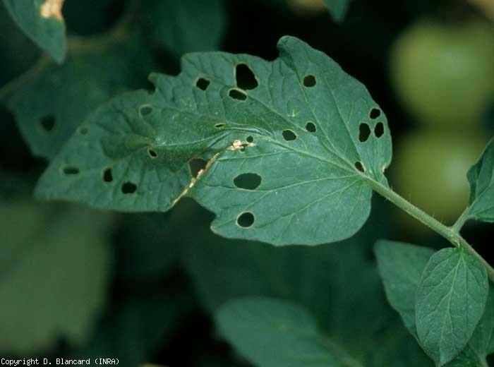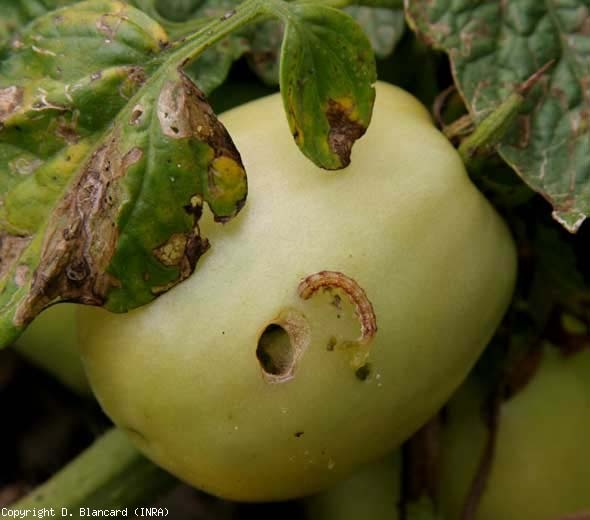 Los órganos aéreos del tomate pueden ser devorados por la etapa de oruga de varios lepidópteros más o menos polífagos. Estos insectos pertenecen a varias familias, en particular a los Noctuidae . Entre estos se encuentran Autographa gamma (L.) (figura 1), Chrysodeixis chalcites (Esper), Helicoverpa armigera (Hübner), Lacanobia oleracea (L.) y Spodoptera exigua (Hübner). Encontramos estas polillas ( bucles ), y muchas otras, en muchas áreas de producción alrededor del mundo, donde a veces causan daños considerables en los cultivos de campo, así como bajo cubierta.