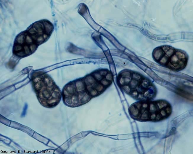 Los conidios de estos hongos germinan en los folíolos y entran directamente por la cutícula o por diversas heridas . Su micelio invade rápidamente los tejidos y las manchas ya son visibles 5 días después de las primeras contaminaciones.
