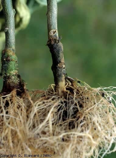 Plusieurs espèces de Phytophthora ont été signalées dans le monde sur le collet de plantules et de plantes adultes de tomate : P. erythroseptica, P. citricola, P. capsici, P. cryptogea, P. nicotianae
