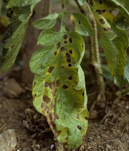 Cabe señalar que varias plagas aéreas del tomate pueden causar síntomas en los folíolos que pueden confundirse con los causados por A. tomatophila , en particular Hinomyces moricola (I. Hino) Narumi & Y. Harada (= Cristulariella moricola (Hino) Redhead, C. pyramidalis Waterman & Marshall), un hongo confidencial en esta Solanaceae que grandes manchas concéntricas ( causa mancha foliar zonada ).