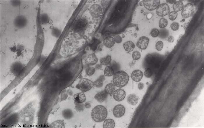 Los fitoplasmas del grupo stolbur de la papa infectan a más de 45 especies entre las solanáceas y al menos a 16 especies pertenecientes a otras 6 familias botánicas. Se multiplican en estas plantas que a veces sirven como fuentes de inóculo. Entre las plantas cultivadas, conservemos el pimiento, la berenjena, la patata, el apio, la zanahoria, la fresa, la vid, el tabaco, la lavanda, el aguacate…. Entre las malas hierbas, podemos citar la enredadera ( Convolvulus arvensis y Calystegia sepium , ver foto 881), la solanácea negra (foto 882), la ortiga ( Urtica dioica ), el trébol… La enredadera y la ortiga parecen jugar un papel crucial en el ciclo epidemiológico del stolbur como huéspedes preferidos de uno de los posibles insectos vectores, que influyen fuertemente en las epidemias de stolbur.