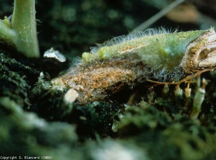 Independientemente de la gravedad del marchitamiento, los síntomas principales deben encontrarse en las raíces y las coronas de las plantas. En el primero, tanto la corteza como el cilindro, revelan numerosas lesiones color marrón rojizo que húmedas de rápidamente se pudren (figuras 1 a 3). Cuanto menor es el diámetro de las raíces, más rápido se pudren y se descomponen. Este es particularmente el caso de ciertos sustratos de cultivos sin suelo en los que son muy abundantes.
