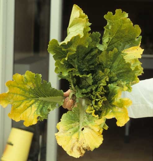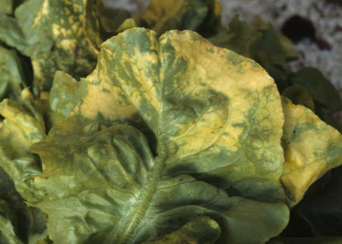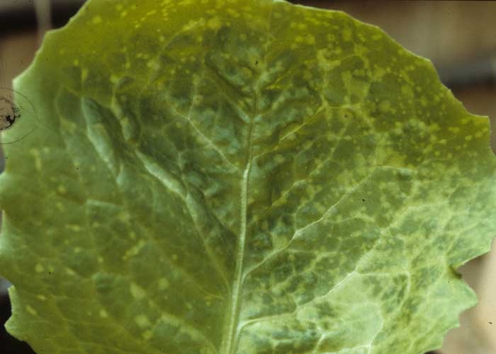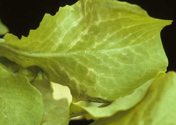 - coloración más o menos homogénea del limbo entre las venas, que a veces progresa hasta el blanqueamiento;