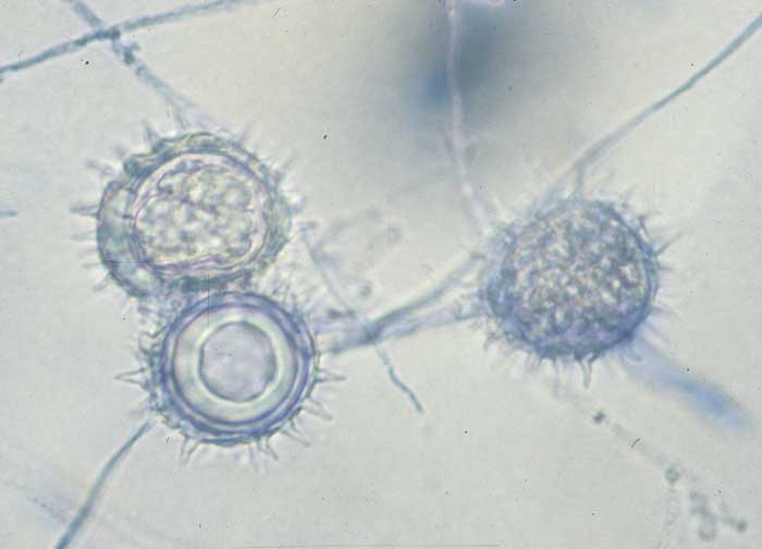 El Pythium spp. son capaces de vivir en estado saprofito a expensas de la materia orgánica. Su baja especificidad parasitaria les permite atacar a un gran número de hospedadores lo que también asegura su multiplicación y conservación. Phytophthora cryptogea ataca muchos cultivos de hortalizas como pepino, tomate, repollo, apio, espárragos, pimientos ?? Phytophthora porri tiene un espectro de hospedadores más limitado a Allium , col blanca y zanahoria. Se mantienen en el suelo mediante estructuras de resistencia , como oosporas , clamidosporas y, en menor medida, esporangios (Figuras 1 a 4). En algunas especies, las oosporas se pueden almacenar durante dos a doce años (Figuras 5 y 6). Las formas conservantes de estos hongos son estimuladas por los exudados emitidos por las semillas o raíces. Producen un tubo germinativo o zoosporas .