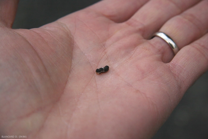 Botrytis cinerea se encuentra a veces en semillas. Es capaz de mantenerse en el suelo sobre los restos vegetales más diversos, esto en varias formas: conidios, micelios y esclerocios (figura 1). Este último se forma en las ramas y, a veces, en las bayas momificadas, o incluso en los tallos en otoño, lo que permite que este hongo permanezca en la vid durante el invierno. Su micelio, presente en la corteza y las yemas latentes, también realiza esta función. Agreguemos que los esclerocios también pueden persistir en el suelo durante varios años. Además, el potencial saprofítico de Botrytis cinerea permite su fácil conservación sobre materia orgánica. También es probable que este hongo polífago ataque y colonice varios cientos de plantas o malezas cultivadas que contribuyen a su conservación y constituyen fuentes potenciales de inóculo.
