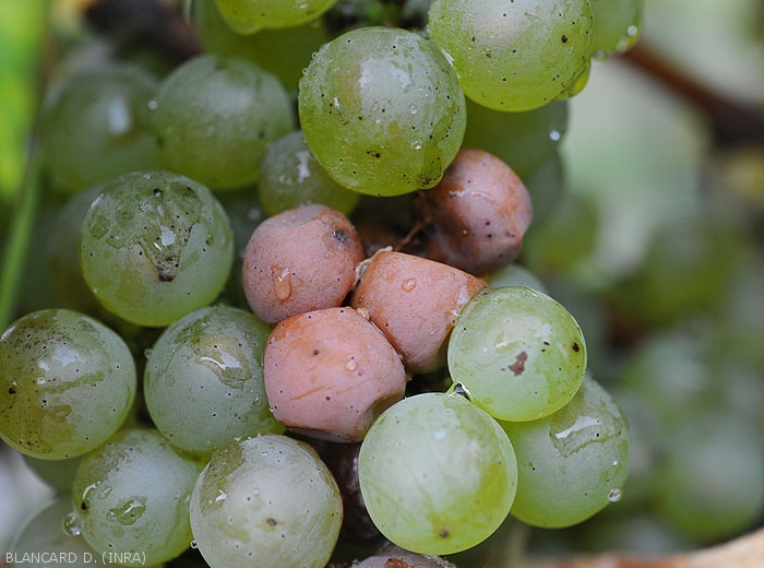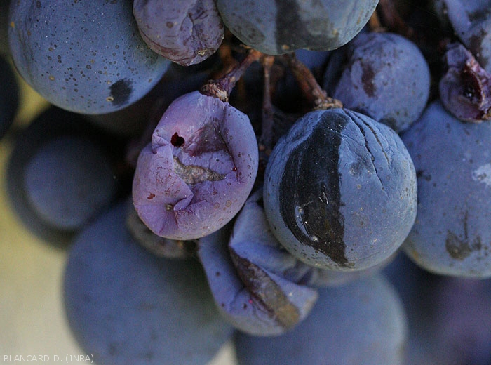 No se cuestiona la nocividad directa de las moscas de la fruta para la vid, pero es el papel indirecto que desempeñan como vector y agravante de la pudrición ácida en la etapa larvaria lo que las clasifica entre las plagas. cultura.