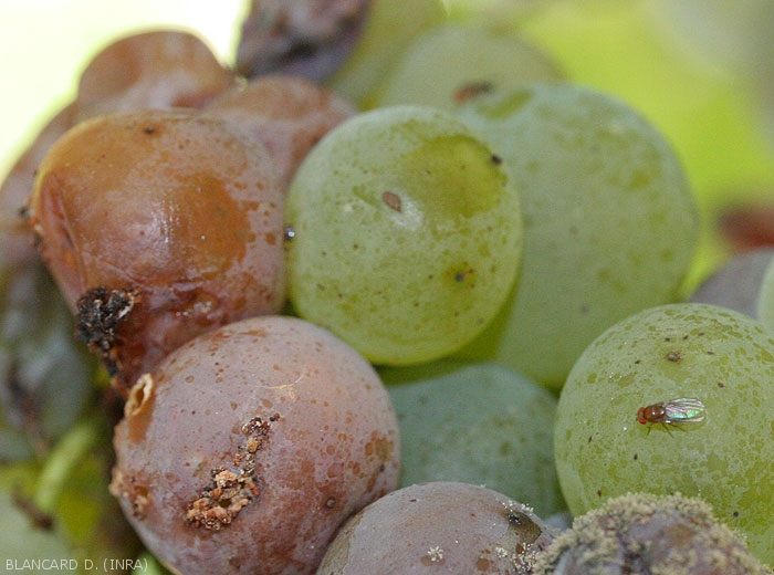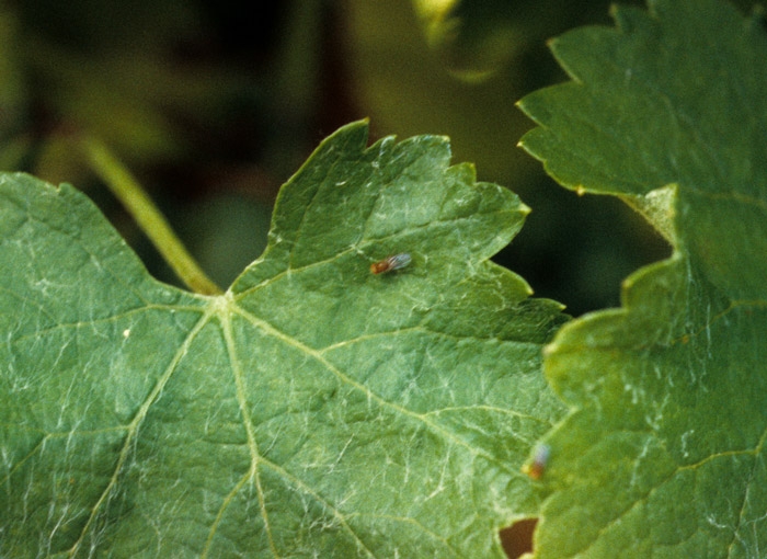- el adulto (Figuras 1-5) es una mosca con alas hialinas inmaculadas, ojos compuestos rojos y una coloración amarillenta a pardusca.