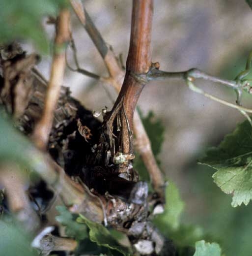 El viento puede arrancar hojas, romper inflorescencias y desarticular las ramitas. Estas lesiones mecánicas provocan una reducción en la cosecha, pero también favorecen el desarrollo de hongos responsables de la esca o la eutipiosis . En tocones jóvenes, el viento a veces conduce a curvas no deseadas y roturas permanentes.