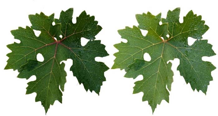 Hojas : pequeñas, asimétricas y en forma de palmeta con un seno peciolar abierto. Los pecíolos son inusualmente cortos y grandes. Follaje tupido. Ramitas : los merithalles o entrenudos son más cortos, aplanados y más numerosos. Bayas : manifestación de coulure y millerandage. |