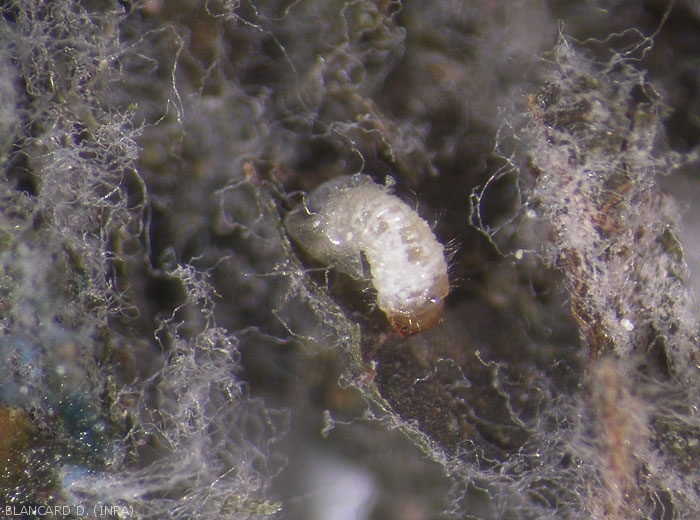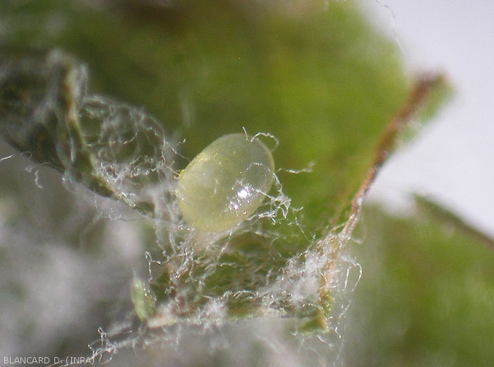 La hembra enrolla las hojas y les da forma de puro para poner entre 30 y 40 huevos (figura 2). Podemos observar entre 5 a 6 por puro. La incubación dura unos diez días y las jóvenes larvas formadas se alimentan de la hoja de las hojas enrolladas durante las primeras 3 a 4 semanas.