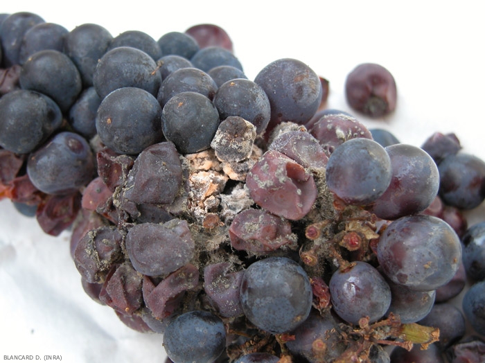 Trichothecium roseum crece principalmente en bayas ya afectadas por la podredumbre gris, cuyo hongo responsable es Botrytis cinerea .
