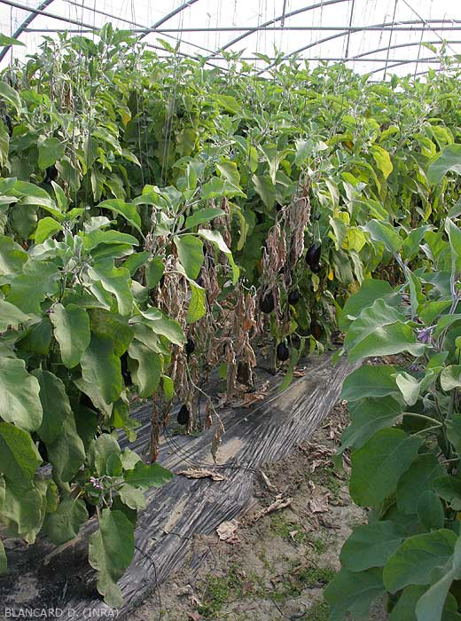 Almacenamiento : tiene un potencial saprofítico significativo. Puede mantenerse en el suelo de 8 a 10 años gracias a sus esclerocios (figuras 9 y 10) que produce sobre los órganos afectados y / o sobre su micelio (figura 3) presentes en los restos vegetales abandonados en las parcelas. Se informó sobre más de 400 especies de plantas diferentes, cultivadas o malezas, en particular muchos cultivos de hortalizas (ensaladas, frijoles, coles, pimientos, berenjenas, muchas cucurbitáceas, apio, guisantes, zanahoria, colinabo, patata, etc.) y un cierto número de malezas desapercibidas.
