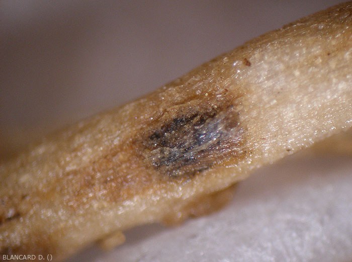 • Lesiones en raíces de extensión limitada, húmedas, de color marrón a negro, a veces suberizadas superficialmente. Están presentes en cantidades reducidas en las raíces principales.