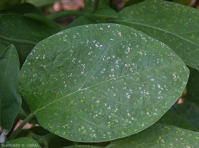 - Órganos atacados: hojas, frutos, tallos y pecíolos.