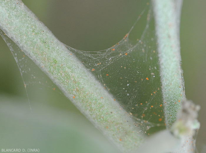 - Signos : Presencia de arañas diminutas en los órganos afectados (figuras).