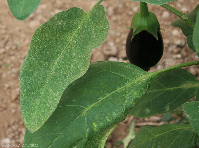 * Las larvas, ninfas y adultos, a menudo presentes en la parte inferior de la lámina de la hoja, se alimentan mordiendo y luego chupando el contenido de las células vegetales y, por lo tanto, son responsables de estos síntomas.