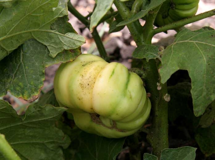 - Aparición progresiva de uno a varios mohos en los órganos aéreos de la berenjena que presentan colores variables, pero a menudo negruzcos.