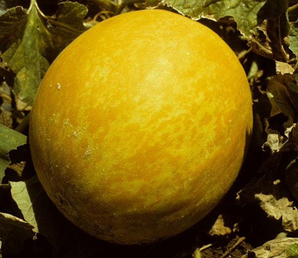 En las variedades del tipo “Charentais”, los síntomas del mosaico verde en jóvenes frutos (Figuras 6 a 8) son muy espectaculares, pero se desvanecen, al menos parcialmente, cuando maduran, en particular en las variedades bordadas. En las variedades tipo “Canario” se observa un mosaico de amarillo claro a amarillo oscuro en los frutos.