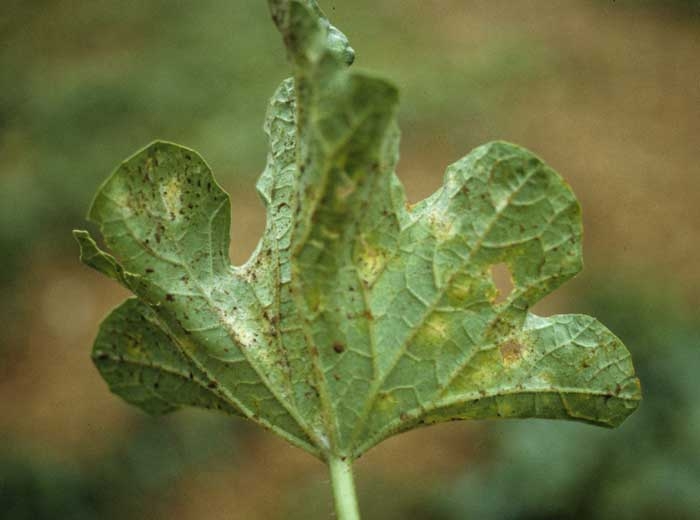 * Cabe señalar que en especies o variedades de Cucurbitáceas poco sensibles al mildiú polvoriento, los síntomas serán atípicos y se materializarán por el desarrollo de manchas amarillentas en lugares donde el hongo tendrá alguna dificultad para establecerse (figuras 6 y 7 ).
