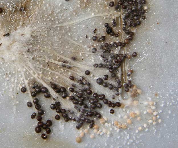 En el tejido dañado, forma rápidamente micelio y esclerocios. Estos pueden germinar rápidamente porque no necesitan una fase latente. Sin embargo, pueden permanecer en el suelo durante varios años sin germinar.