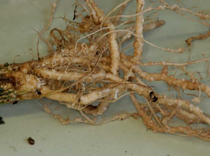Estas alteraciones radiculares interrumpen la absorción de agua y elementos minerales y, por tanto, el desarrollo de plantas que presentan un crecimiento más o menos reducido. El follaje puede ser clorótico y el marchitamiento a veces ocurre durante las horas más calurosas del día. Las hojas inferiores de las plantas gravemente afectadas muestran una senescencia temprana.