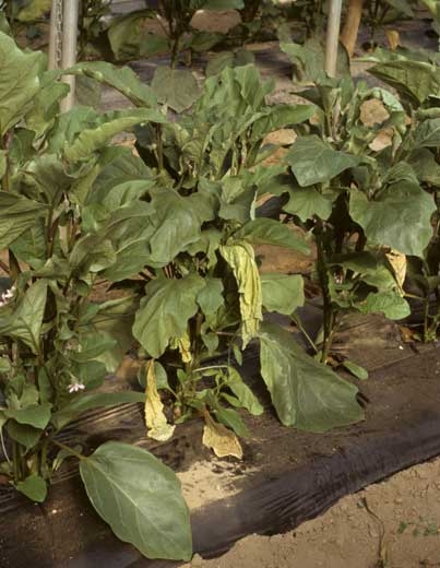 <i><b>Phytophthora nicotianae</b></i> (ex <i>P. parasitica</i>, podredumbre basal) en berenjena.
