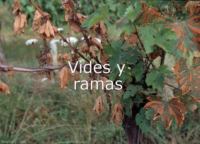 Este módulo le ayudará en la identificación de las enfermedades parasitarias y los desordenes fisiológicos de la vid. Es importante precisar la localización y la naturaleza de los síntomas observados sobre la planta enferma, utilizando las dos primeras series de imágenes. Elegir aquella imagen que presenta el o los síntomas que más se asemejan a los observados sobre la planta enferma. Sobre cada imagen podrá encontrar adjunta una leyenda explicativa. Probar las hipótesis asociadas a otras imágenes con síntomas comparables. Consultar la ficha y las imágenes a fin de confirmar el diagnóstico realizado y elegir los métodos de protección adaptados.