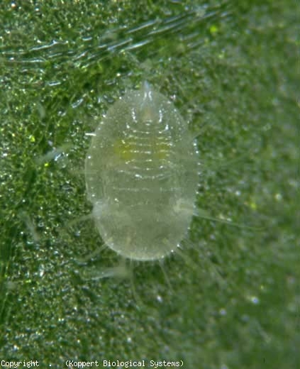 - Etapas de desarrollo : los huevos (figuras 4-1 y 2) (figuras 5 y 6) se depositan principalmente en el envés de los folíolos en el ápice. De color blanco, son ovalados y tienen un diámetro de 0,25 mm. En los días siguientes a la puesta oscurecen. Entre 7 y 10 días después, las larvas eclosionan (figura 4-3) (  (figuras 7 y 8); estas, ovaladas y planas, miden 0,3 mm y tienen antenas y patas bien desarrolladas. inmóviles y se alimentan con su tribuna. Las larvas de segundo estadio son aplanadas, transparentes y miden 0.37 mm. Las larvas de tercer y cuarto estadio son bastante comparables (Figuras 4-4 y 5), sin embargo con longitudes respectivas de 0.51 y 0.73 mm. último estadio larvario, el insecto segrega cera. Es cuando aparecen sus ojos rojos que se le llama pupario (figura 4-6) (figura 9). Posteriormente, la mosca blanca se desarrolla y adquiere un tinte blanco. Adultos (figura 4-7 ) (figuras 10 y 11) tienen 2 pares de alas, de tamaño diferente según el sexo: 1,1 mm para las hembras y 0,9 mm para los machos El cuerpo y las alas están recubiertos de un característico polvo ceroso blanco. Criterios morfológicos leves ics (disponibles en la tabla siguiente) permiten diferenciar los dos insectos. Las larvas y los adultos, a menudo presentes en la parte inferior de la hoja, se alimentan a través de su tribuna que actúa como una bomba de succión. El exceso de azúcar en la savia se libera en forma de melaza, especialmente por las grandes larvas.