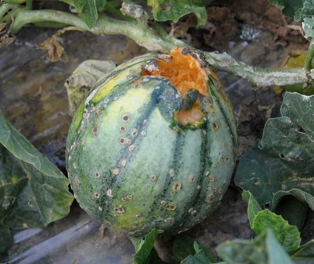 Se reporta en Cucurbitáceas en varias áreas de producción alrededor del mundo, responsable de la pudrición de la fruta que ocurre antes y después de la cosecha durante el almacenamiento. El melón se ve especialmente afectado, pero también el pepino, el calabacín, la calabaza ...