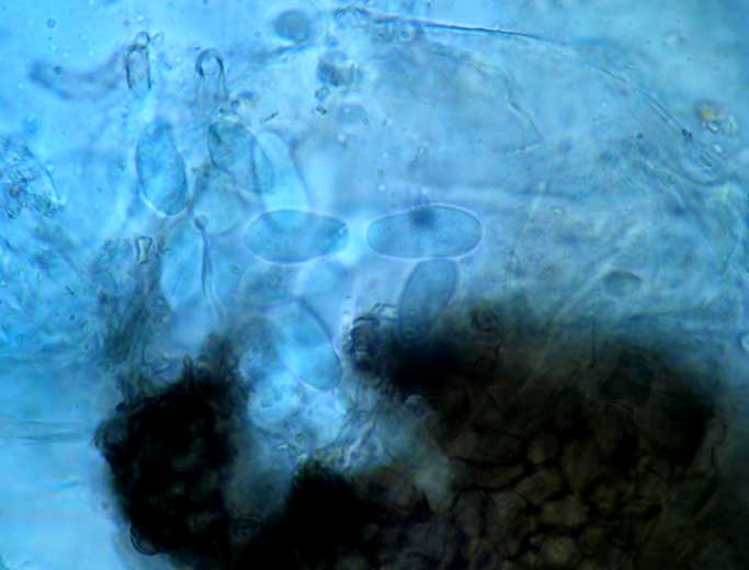 - Pycnides rappellant sur melon celles occasionnées par Didymella bryoniae, globuleuses et disposant d'un ostiole tronqué, elles produisent des conidies hyalines, ellipsoïdes à ovales, mesurant 16-29 x 6-9 µm.