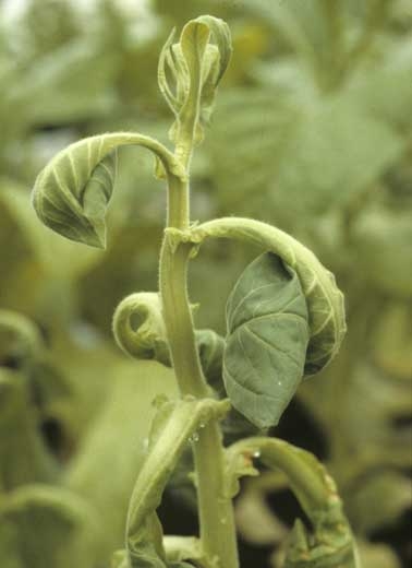 Certains pesticides surdosés, pulvérisés dans de mauvaises conditions ou apportés malencontreusement peuvent être à l'origine de phytotoxicités ("chemical injuries") induisant des modifications du port de la plante et de la forme des feuilles. On peut notamment observer :