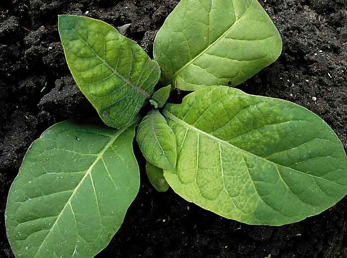 Des lésions allongées brunes à noires sont présentes sur les nervures, les pétioles et la tige (figure 4). Le sommet de cette dernière s'incurve parfois vers le sol (figure 5).