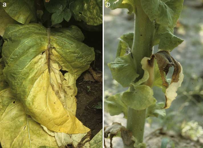 Les bactéries présentes sur les plantes vont les pénétrer essentiellement par l'intermédiaire de blessures ou de tissus sénescents. Par exemple, elles peuvent contaminer des jeunes plantules à partir de leurs premières feuilles jaunissantes et humides, en contact avec le sol. De la même manière, elles gagnent la tige en passant par des plaies d'écimage ou d'effeuillage (figure 2), ou via des portions de feuilles sénescentes ou altérées (figure 3). Une fois en place, leurs enzymes cellulolytiques et pectinolytiques contribuent activement au développement d'une pourriture humide et parfois nauséabonde.