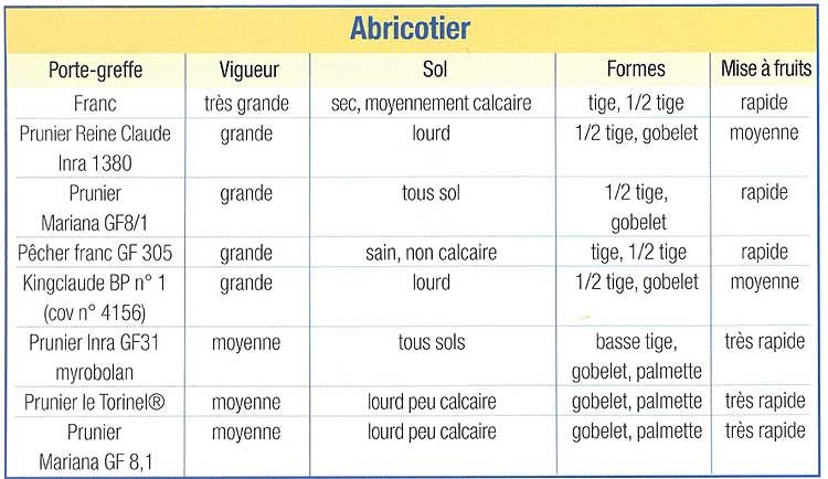 Cette espèce est multipliée par greffage sur franc, amandier, pêcher ou prunier (figure). Ces porte-greffes sont obtenus par semis, marcottage ou bouturage. Une plantation d'arbres greffés sur abricotier franc peut produire pendant 40 à 45 ans. La plantation se fait au début de l'hiver, pendant la phase de repos végétatif. Cet arbre est cultivé en plein vent ou en espalier, selon les variétés. Il supporte mal les tailles trop sévères comme les autres Prunus et est facilement sujet à la gommose.