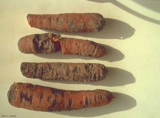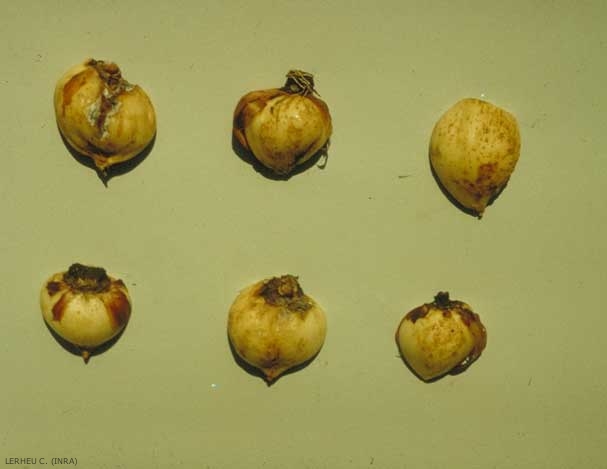 Les plantes-hôtes sont la pomme de terre, la carotte (figure 1), le houblon, le pissenlit (Taraxacum spp.), l'iris (Iris spp., figure 2) et le bégonia (Begonia spp.). En région parisienne, le nématode de la pomme de terre attaque aussi le champignon de couche. Ditylenchus destructor cause des dégâts importants surtout en Europe de l'Est.