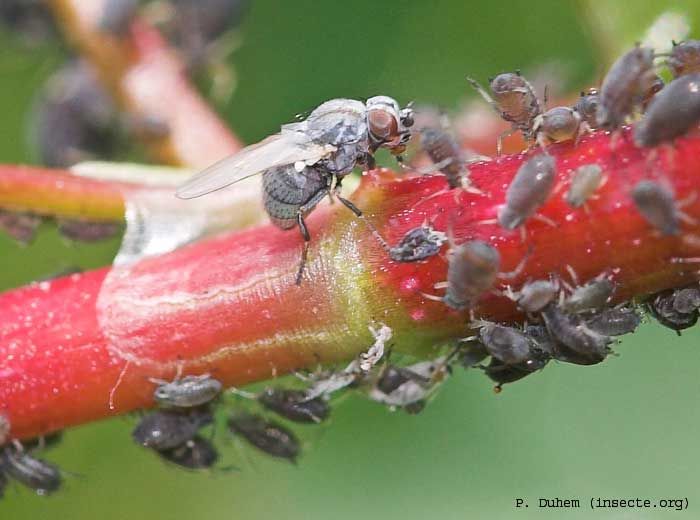 Les Chamaemyiidae (mouche argent, figure) forment une petite famille dont les adultes et les larves consomment des pucerons et des cochenilles. Moins connues, d'autres familles renferment des espèces prédatrices intéressantes.