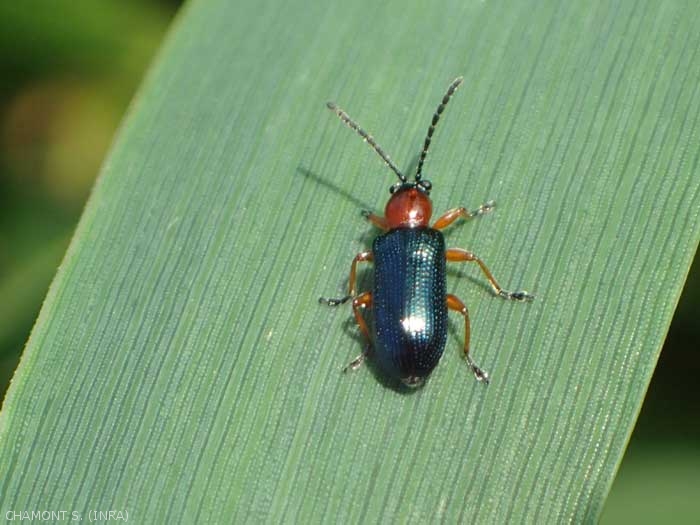 - syn. scientifique : Oulema melanopa, Lema melanopa